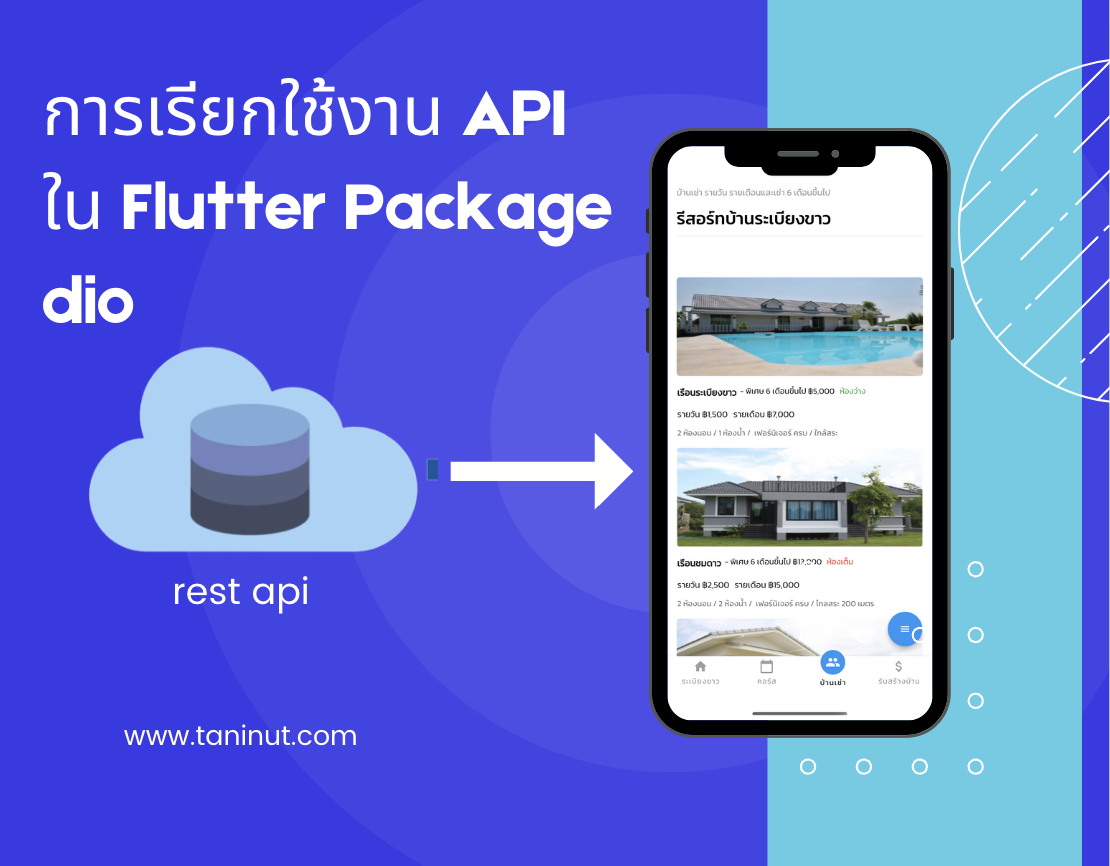 นอกจาก package http แล้ว ยังมี package อีกหนึ่งตัวที่ชื่อว่า dio ที่ใช้สำหรับการเรียกใช้งาน API ใน Flutter ได้อีกด้วย โดย dio มีการจัดการการเชื่อมต่อแบบ asynchronous และมีฟีเจอร์เพิ่มเติมอีกมากมาย เช่น การกำหนด timeout, การกำหนด header และ interceptor สำหรับตรวจสอบ token ก่อนทำการเรียก API เป็นต้น ดังนั้น การใช้งาน dio จึงเป็นทางเลือกที่ดีกว่าในบางกรณี ดังนี้