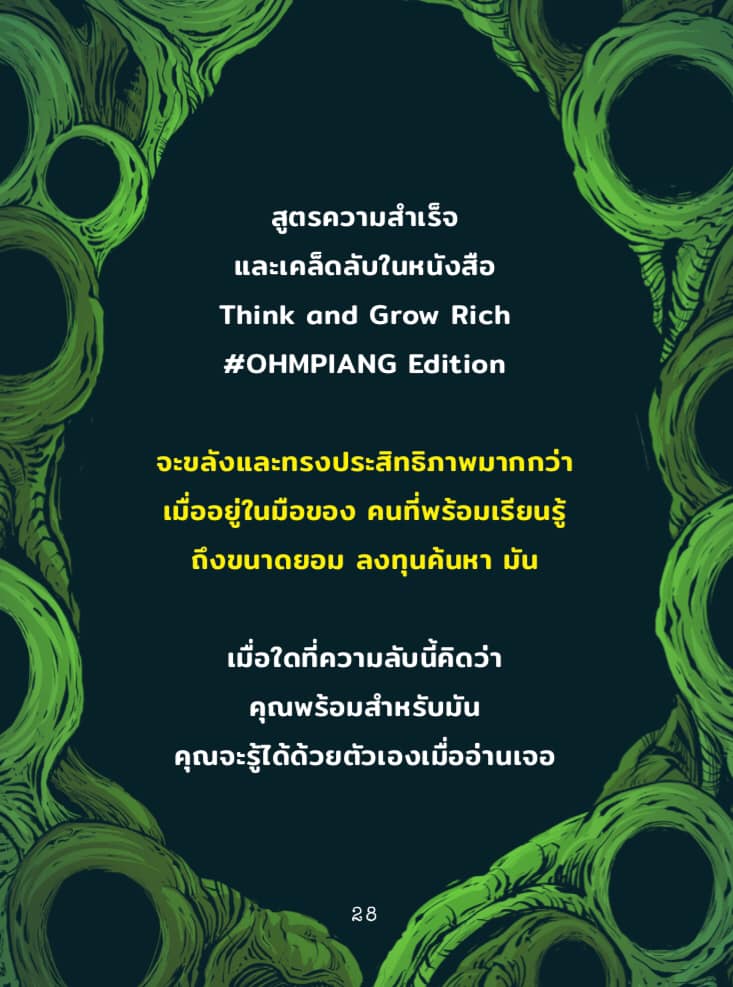แปลโดย ธีระธรณ์ จิรธนัยโรจน์ นักเขียนโฆษณา ( Copywriter ) ผู้แปลหนังสือขายดีระดับตำนาน Think and Grow Rich OHMPIANG Edition และ The Power of Your Subconscious Mind และมี กลุ่ม Mastermind ให้เข้ามาศึกษาทุกวันพฤหัส ประมาณ 2 ทุ่ม ผ่านออนไลน์ โดยใช้ Google meet